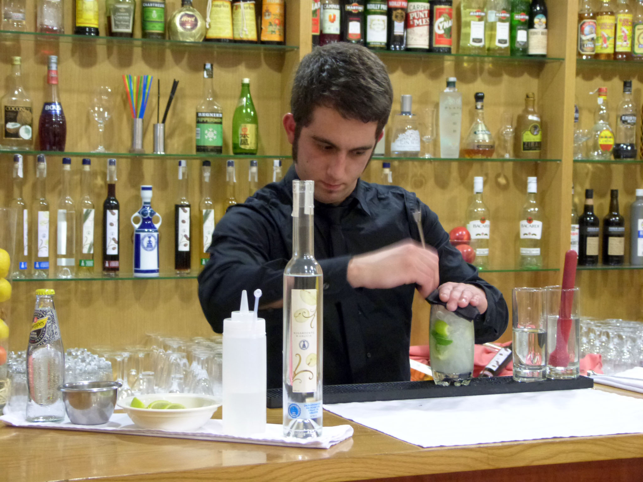 “El Orujo de Galicia es una bebida tan versátil como pueda ser cualquiera de las habituales que se usan en coctelería, como el vodka o la ginebra, pero tiene muchísima más personalidad y mayor calidad”, afirmaba el vicedirector del centro, Antonio García Santiso, durante la primera parte de la jornada, en la que se elaboraron un total de cinco cócteles.