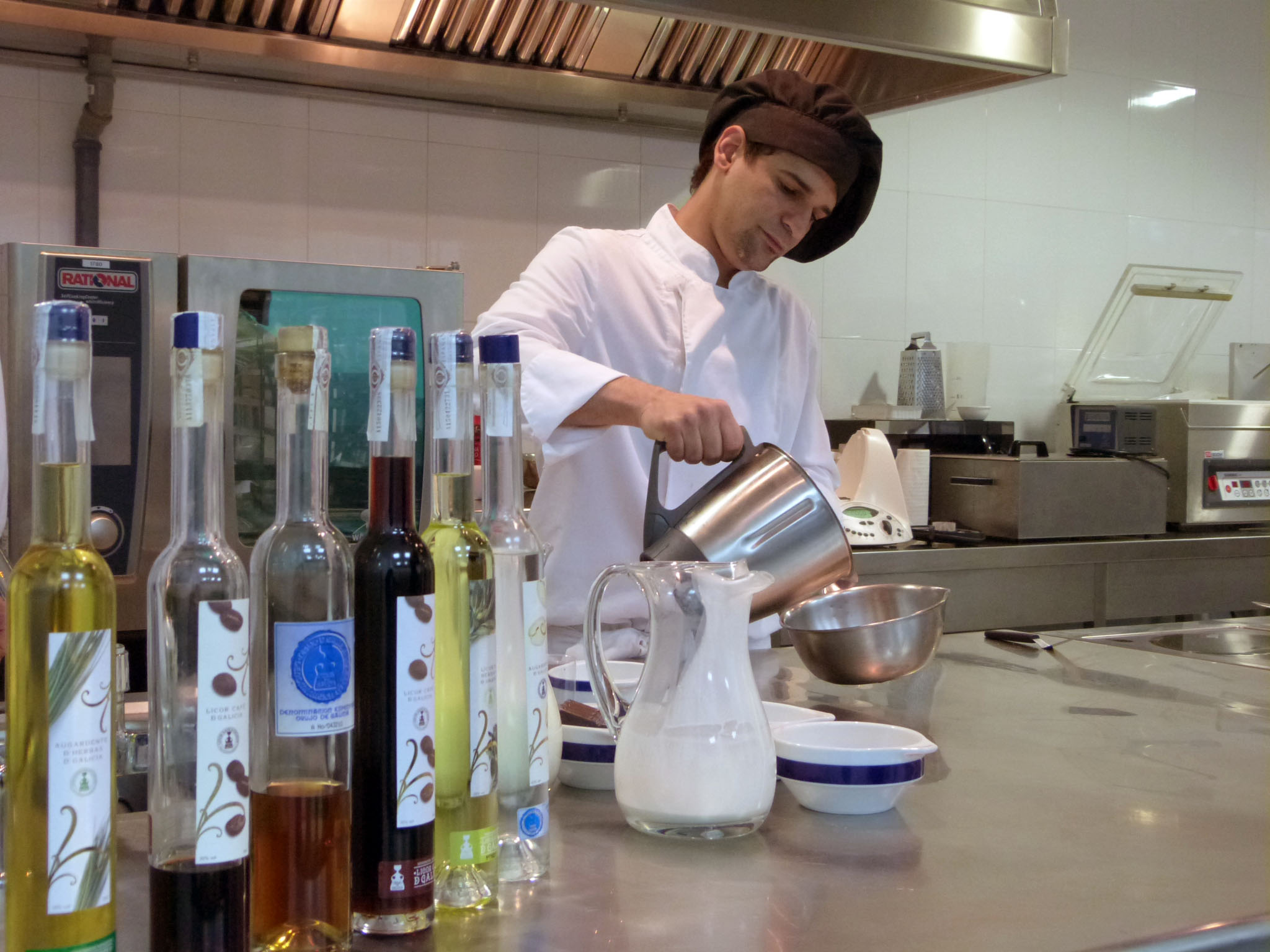 Los alumnos desarrollaron durante la jornada un ejercicio de imaginación e ingenio, creando recetas completamente originales en las que poder emplear este producto, tradicionalmente asociado a su consumo en solitario. Así, en las elaboraciones de cocina el centro sorprendió con la elaboración de un plato de pescado, lubina flambeada al licor de hierbas de Galicia; y una carne, brocheta de lomo de cordero con vinagreta de licor café de Galicia. Recetas sencillas en su elaboración pero en las que el uso de alguno de los productos amparados por el Consejo Regulador le aporta un toque diferente que sorprende agradablemente al paladar.