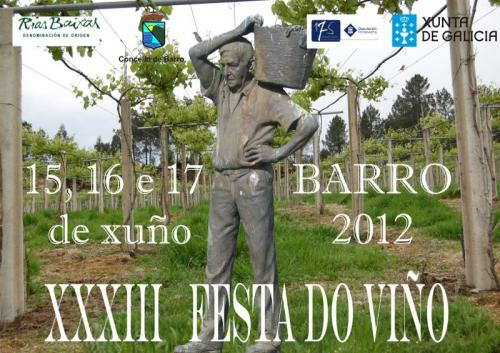 XXXIII Festa do Viño en Barro (Pontevedra)El Pazo da Crega (San Antoniño) acoge una nueva edición de la fiesta vinícola en el Ayuntamiento de Barro. La inauguración del VII Certame de viños D.O. Rías Baixas tendrá lugar el viernes 15, a las 21:00 horas. El II Concurso O Pincho do Viño se celebra al día siguiente pasado el mediodía, para dar paso ya por la tarde al festival de folclore. La jornada del domingo se reserva para la cata de Albariño Rias Baixas, desde las 11:30 horas, seguido de una sardiñada gratuita, entrega de premios y actuaciones musicales.