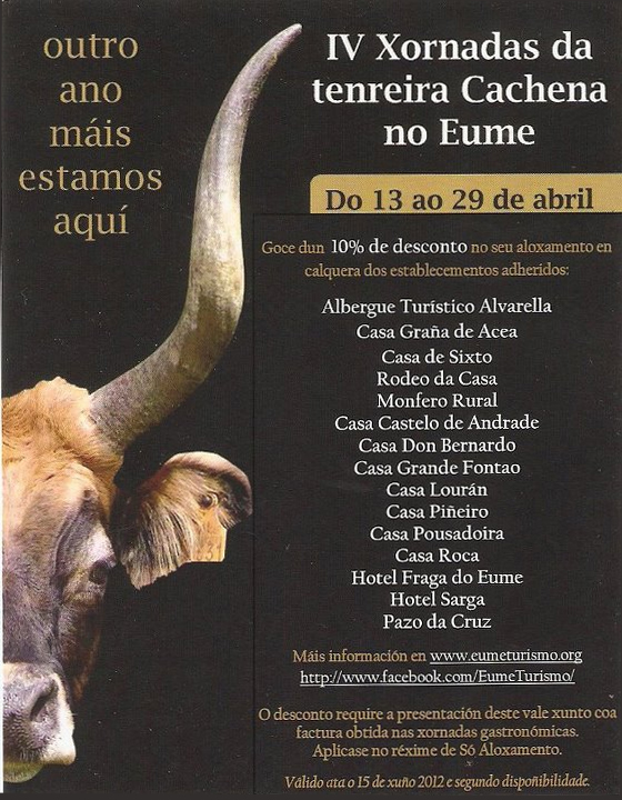 Por cuarto año consecutivo, once restaurantes del Eume se unen para promocionar la carne de ternera cachena, una iniciativa para la que cuenta con la ayuda de la Asociación de Empresarios de Turismo del Eume, el Centro de Iniciativas Turísticas y la Federación de Razas Autóctonas Gallegas.
