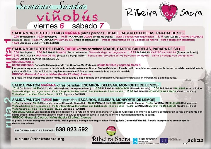 El precio incluye: microbus, guía acompañante, visita guiada y cata comentada en una bodega, visita y degustación en el Centro del Vino de la Ribeira Sacra y obsequio de recuerdo.